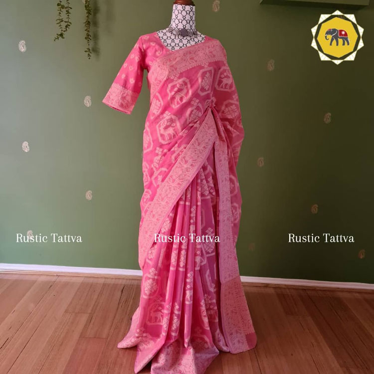 Pink Benarasi Silk Cotton With Chikankari type Thread Work Saree